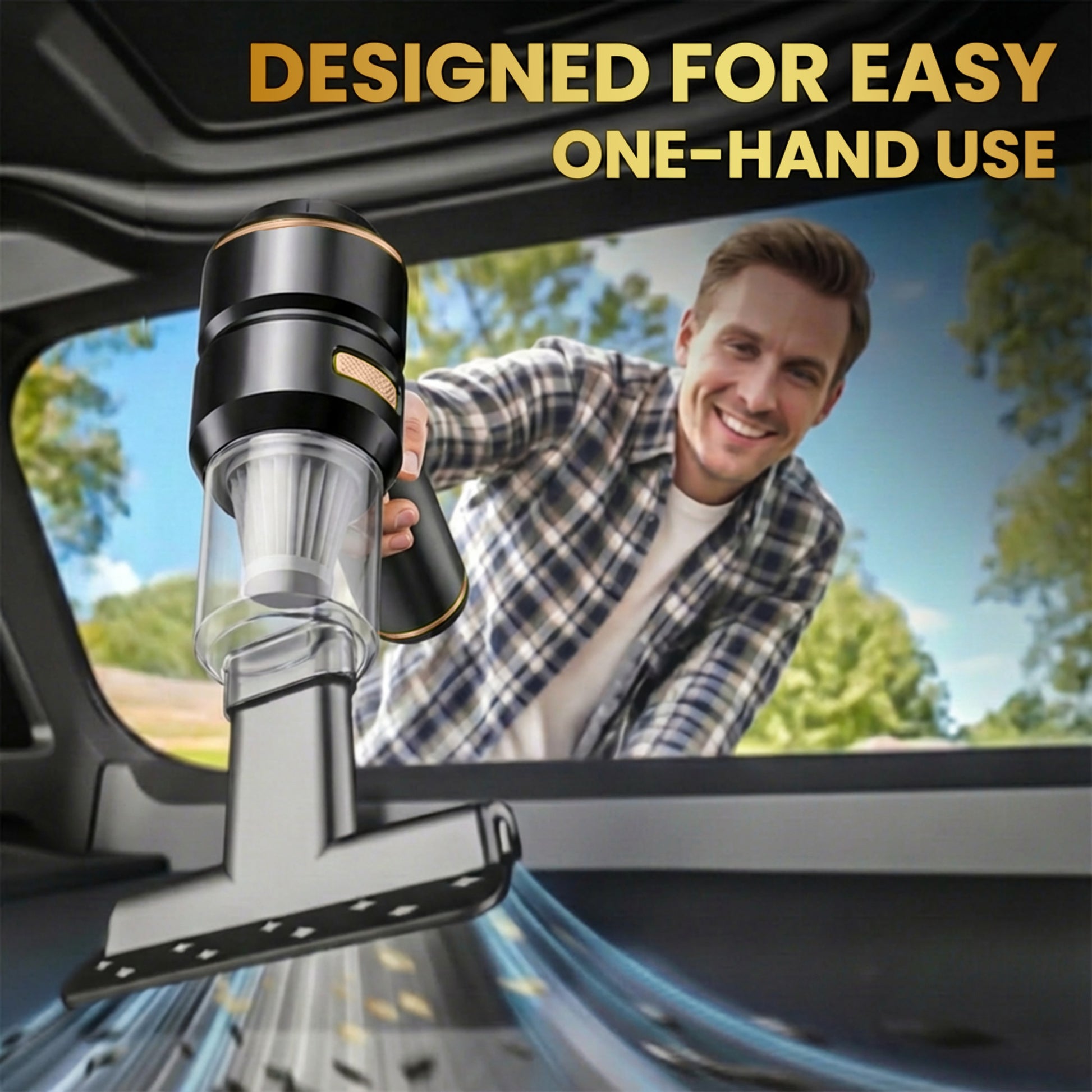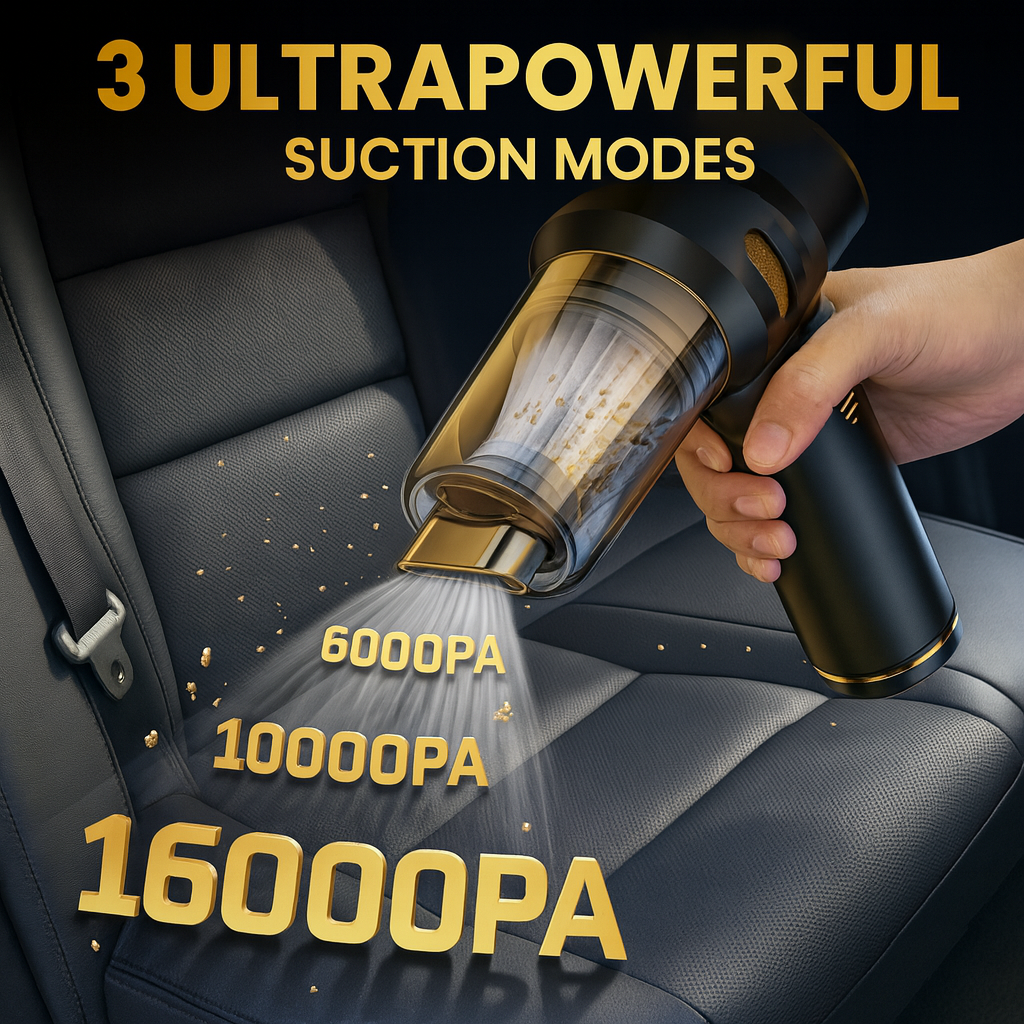 "I’ve tried plenty of car vacuums before, but this one blew me away — literally! The suction is powerful enough to pick up pet hair and crumbs in seconds, and the blower function is perfect for clearing dust from hard-to-reach corners. It’s lightweight, charges fast, and I keep it in my trunk for quick cleanups. Highly recommend for anyone who wants a spotless car without the hassle of going to a car wash!"